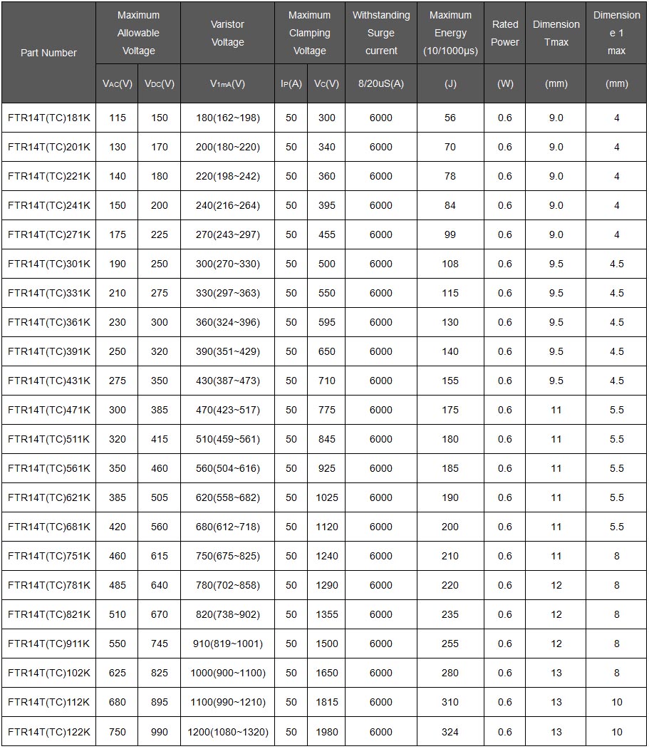 FTR14T(TC)221K 過熱保護壓敏電阻
