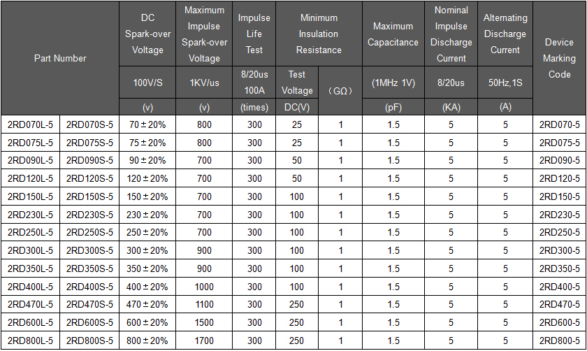 簡(jiǎn)要描述:陶瓷氣體放電管 2RD600L-5