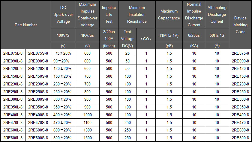 簡要描述:陶瓷氣體放電管 2RF150L-8