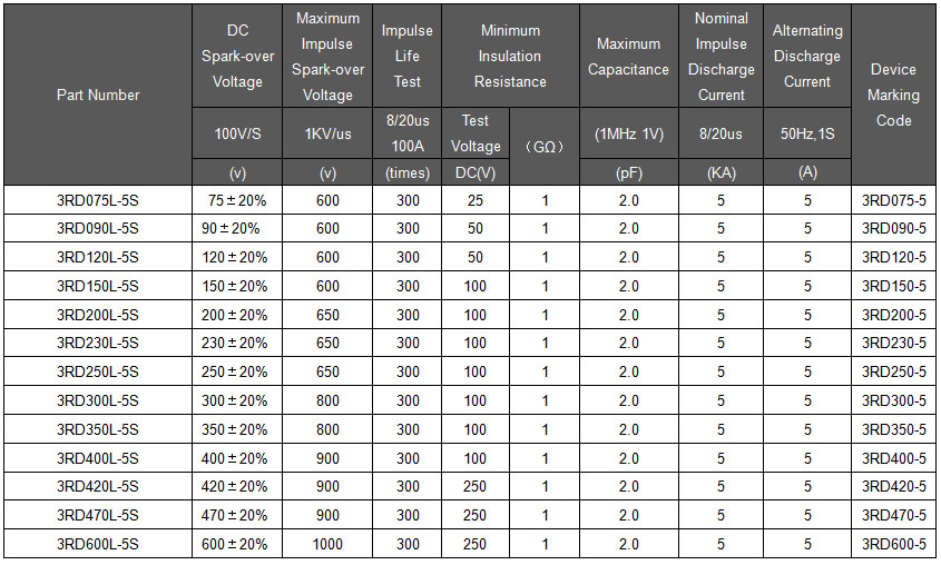簡要描述:陶瓷氣體放電管 3RD200L-5S