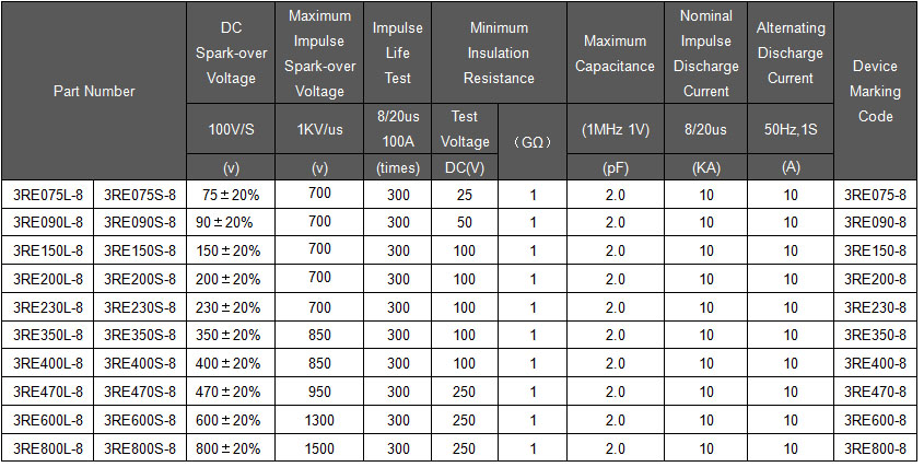簡(jiǎn)要描述:陶瓷氣體放電管 3RE350L-8