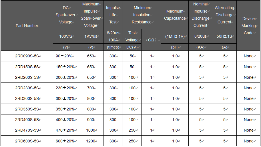 簡要描述:陶瓷氣體放電管 2RD200S-5S