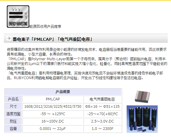 簡要描述:蓄電素子「PMLCAP」「電氣兩重層電容」